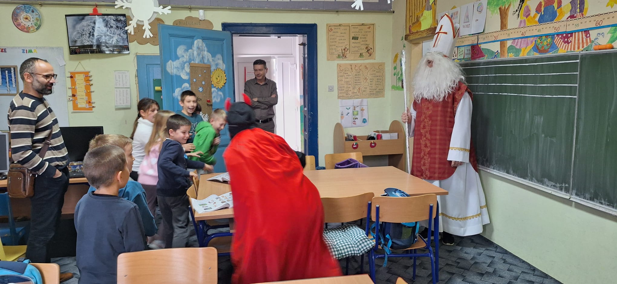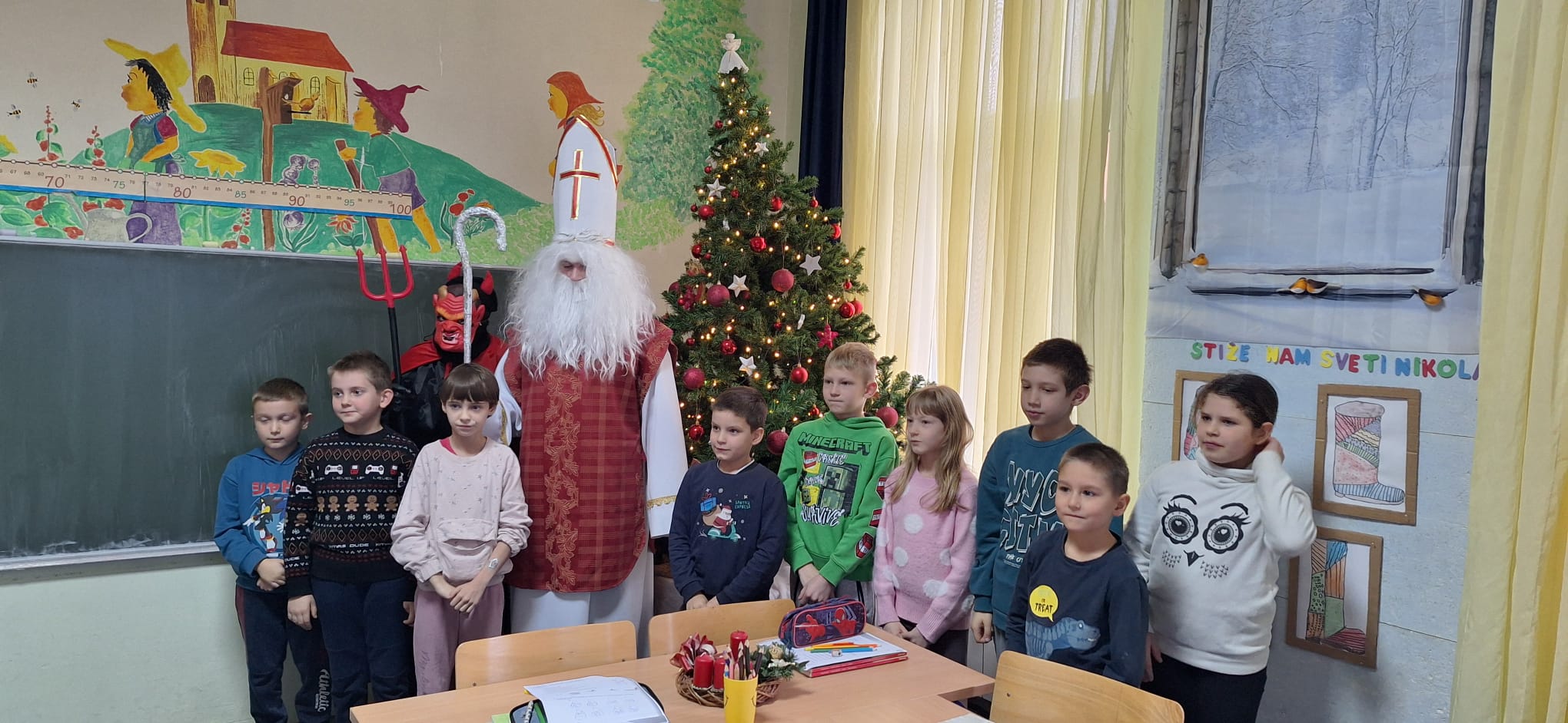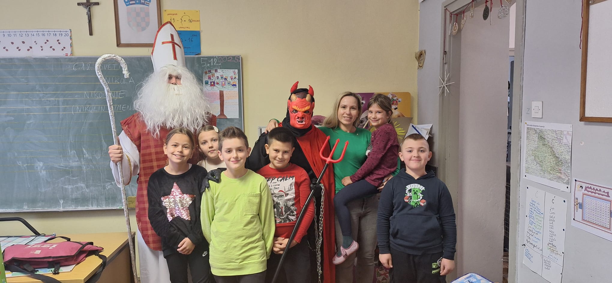 Povodom blagdana Svetog Nikole, u Matičnoj školi i svim područnim odjelima Osnovne škole Mirka Pereša zavladalo je posebno veselje. Sveti Nikola, u pratnji nestašnog Krampusa, obišao je sve razrede i razveselio učenike koji su ga s nestrpljenjem dočekali.
