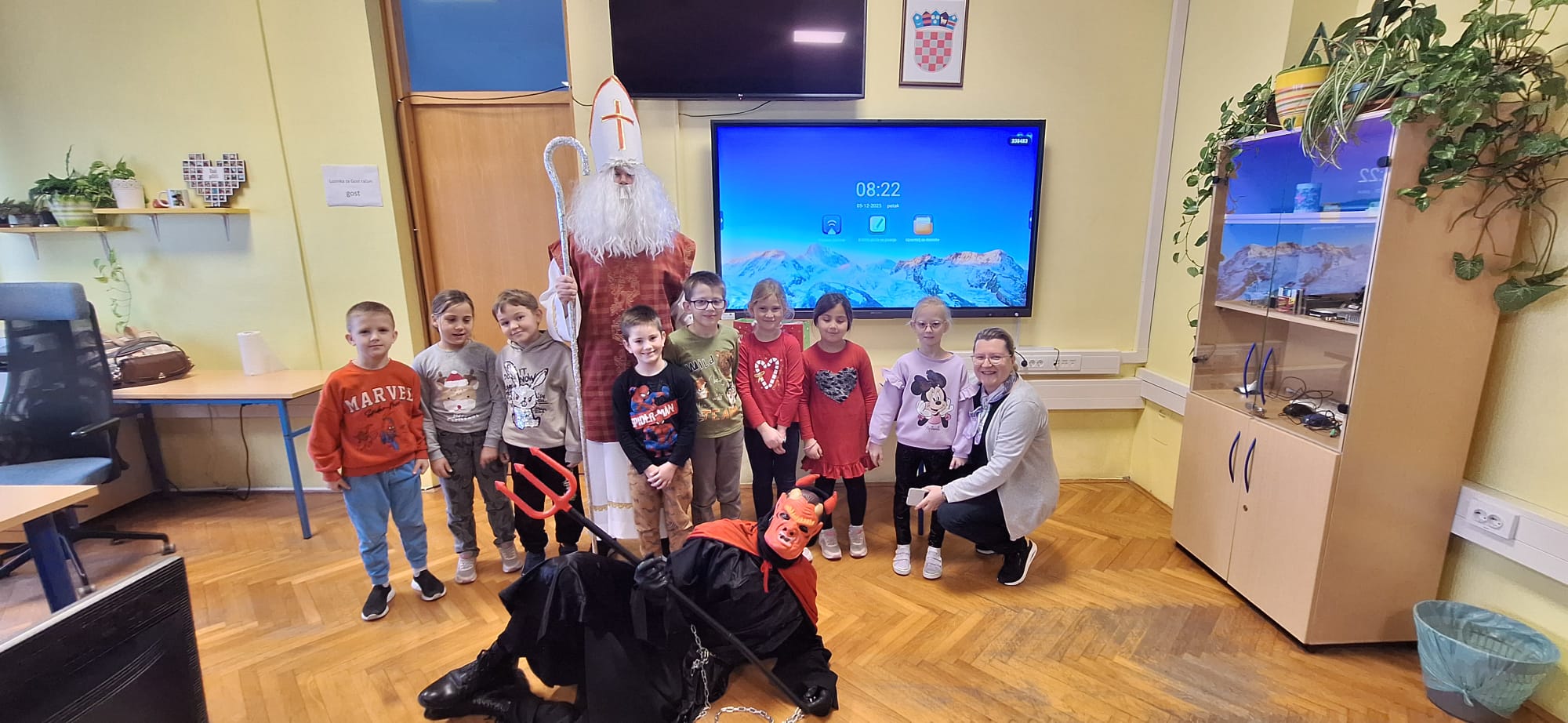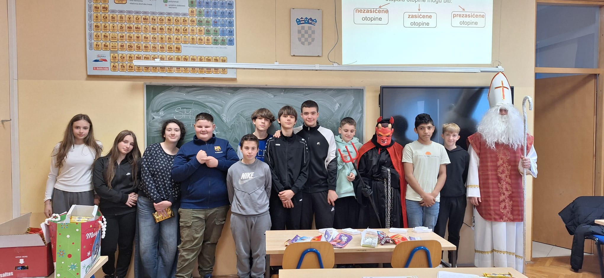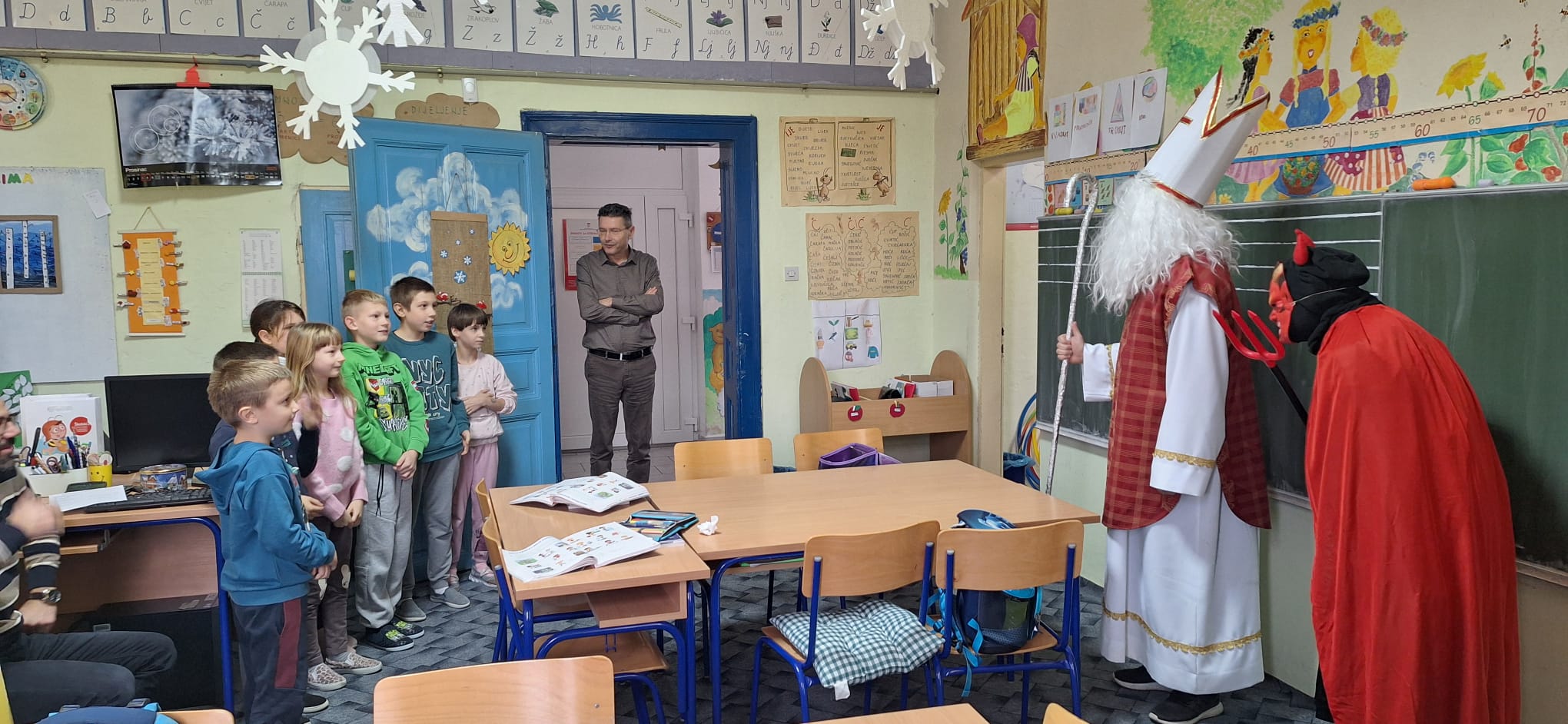 Povodom blagdana Svetog Nikole, u Matičnoj školi i svim područnim odjelima Osnovne škole Mirka Pereša zavladalo je posebno veselje. Sveti Nikola, u pratnji nestašnog Krampusa, obišao je sve razrede i razveselio učenike koji su ga s nestrpljenjem dočekali.