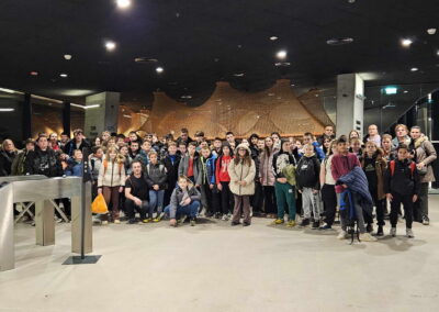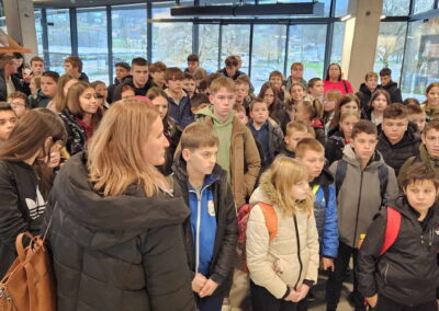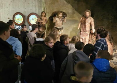 Muzej krapinskih neandertalaca, jedan od najmodernijih muzeja u ovom dijelu Europe, učenicima je pružio jedinstvenu priliku upoznati život i kulturu neandertalaca na mjestu jednog od najvažnijih svjetskih paleoantropoloških nalazišta – Hušnjakova. Uz stručno vodstvo, učenici su kroz multimedijske postave, modele i interaktivne sadržaje proširili svoje znanje iz Povijesti, Geografije, Fizike, Tehničke kulture, Informatike i Vjeronauka. Posebno zanimanje izazvale su likovne radionice “Otisak povijesti” i “Životinje prapovijesnog doba”, u kojima su učenici kreativno izrazili svoje doživljaje prapovijesnog svijeta. Najuspješniji radovi izloženi su u prostoru škole.