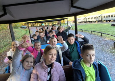 Učenike je najviše obradovala vožnja turističkim vlakićem, no izvrsno su se snašli u izradi lutkica od komušine kao i u tradicijskim igrama koje su osmišljene u duhu Lovrakovih djela, a potiču kretanje, suradnju i veselje na svježem zraku. U razgledavanju postava centra učenici su imali prilike vidjeti parnu lokomotivu s vagonima koja je poznati simbol romana i filma za djecu „Vlak u snijegu“ te tradicionalni mlin s vodenicom koji je inspiriran romanom „Družba Pere Kvržice“. Sadržajno bogata terenska nastava se svidjela učenicima jer su posjetili mjesto gdje se književnost, baština i priroda susreću u jedinstvenom edukativno-doživljajnom prostoru.